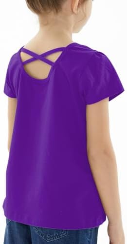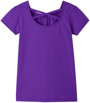 Noomelfish Girls Criss Cross Back T-Shirts Short Puff Sleeve Tee Tops (5-12 Years)