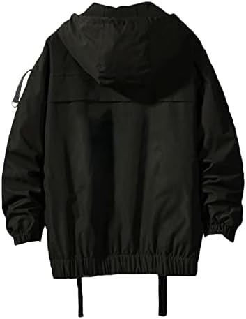 Nutriangee Mens Hip Hop Streetwear Windbreaker Jacket Lightweight Casual Outdoor Bomber with Ribbons Coat