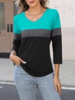 ORANDESIGNE Women’s 3/4 Sleeves V Neck T Shirts Color Block Casual Summer Tops Fashion Loose Shirts Tees