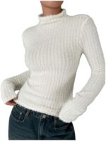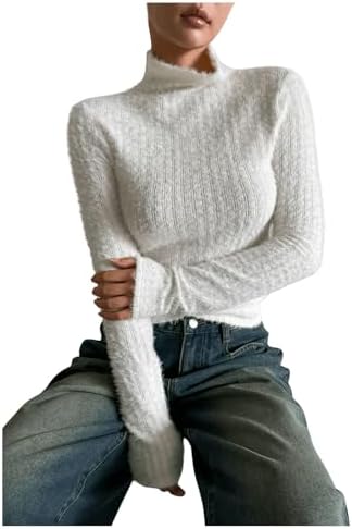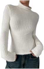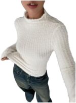 Be the first to review “OYOANGLE Women’s High Neck Long Sleeve Fuzzy Sweater Ribbed Knit Slim Fit Pullover Tops” Cancel reply