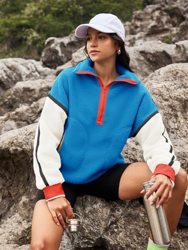 Panadila Womens Half Zip Sherpa Fleece Pullover Soft Oversized Sweatshirt with Pockets Warm Fuzzy Sweater