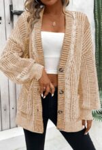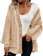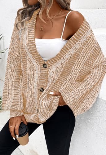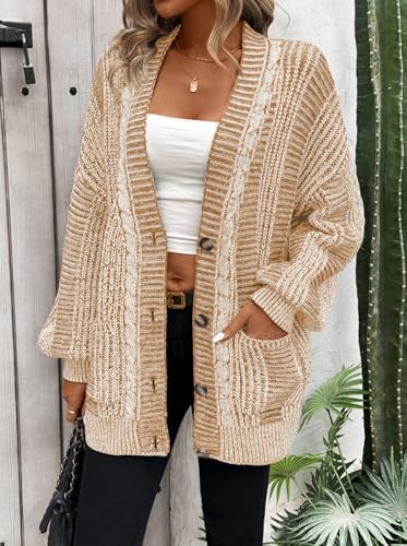 Pink Queen Women’s 2024 Fall Winter Cardigan Sweater Long Sleeve Cable Knit Loose Outerwear Coat