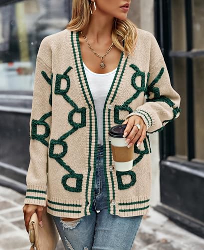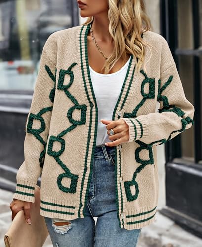 PRETTYGARDEN Women’s Spring Chunky Knit Cardigan Sweaters Casual Open Front Button Up Winter Coats Outerwear