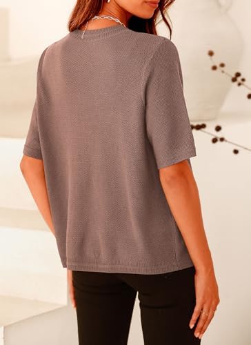PRETTYGARDEN Women’s Summer Button Down Shirts Casual Short Sleeve Crew Neck Ribbed Knit Blouse Top Cardigans