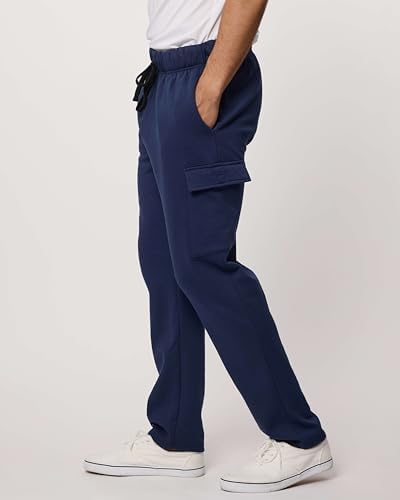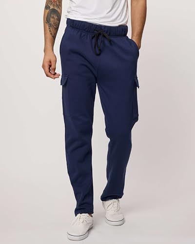 Home Bottoms Real Essentials 3 Pack: Men’s Tech Fleece Open Bottom Cargo Sweatpants with Pockets (Available in Big & Tall)