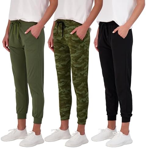 Real Essentials 3 Pack: Women’s Ultra-Soft Lounge Joggers Sweatpants Athletic Yoga Pants with Pockets (Available in Plus)