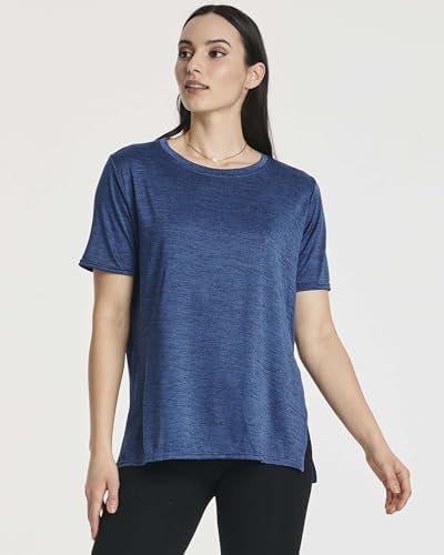 Real Essentials 5 Pack: Women’s Short Sleeve Active Workout T-Shirts – Dry Fit Gym Tops with Split Hem (Plus Sizes)