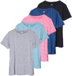 Home Sales & Deals Under $50/$100 Real Essentials 5 Pack: Women’s Short Sleeve Active Workout T-Shirts – Dry Fit Gym Tops with Split Hem (Plus Sizes)