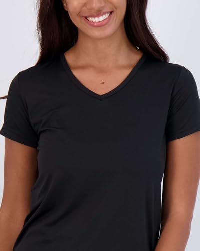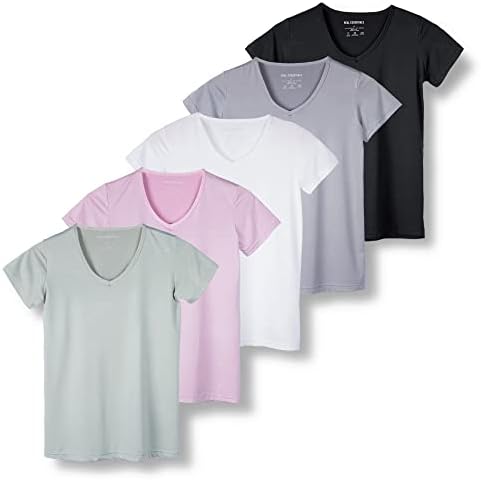 Real Essentials 5 Pack: Women’s Short Sleeve V-Neck Activewear T-Shirt Dry-Fit Wicking Yoga Top (Available in Plus)