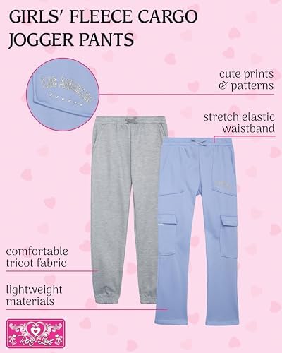Real Love Girls’ Sweatpants – 2 Pack Fleece Cargo & Basic Classic Jogger Sweatpants – Cozy Cargo Jogger Pants for Girls, 7-16