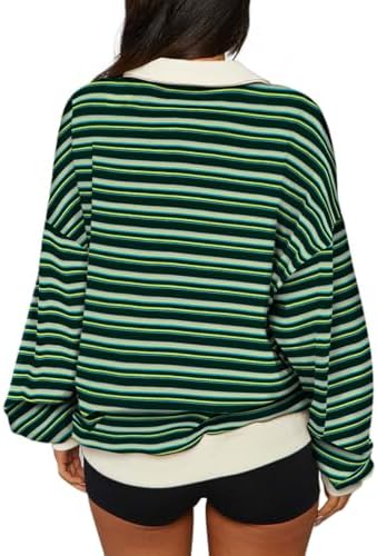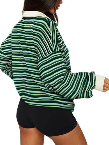 REORIA Oversized Sweatshirt for Women Trendy Fall Fashion 2024 Y2k Striped Long Sleeve Pullover Rugby Shirt Tops Clothes
