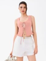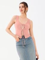 Be the first to review “REORIA U-Neck Adjustable Tie-Front Crop Top Soft Fabric Y2K Sexy Sleeveless Tops 2025 Spring/Summer Designer Collection” Cancel reply