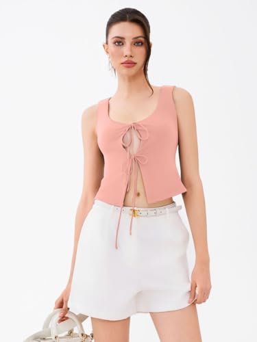 REORIA U-Neck Adjustable Tie-Front Crop Top Soft Fabric Y2K Sexy Sleeveless Tops 2025 Spring/Summer Designer Collection