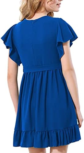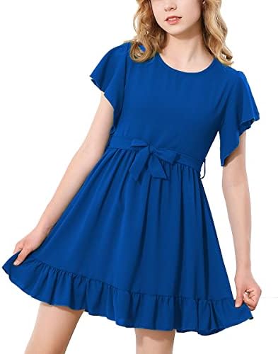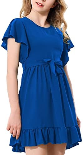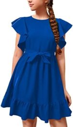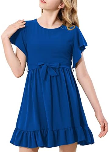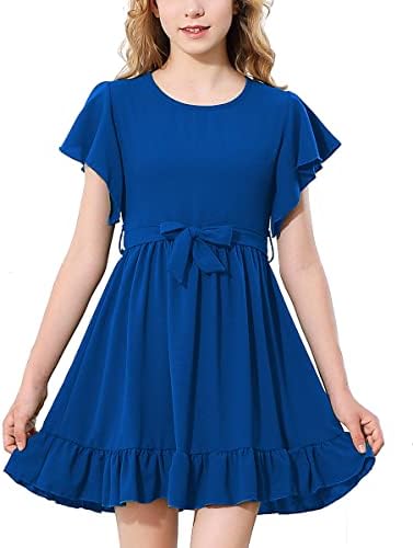RETSUGO Girl Spring Summer Dresses Butterfly Sleeve Cotton A Line Ruffles School Dress for 6-14 Years Kids