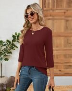 Womens Tops 3/4 Sleeve T Shirts V Neck Summer Tops Dressy Casual Basic Tees Loose Tunics