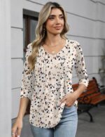Be the first to review “Romanstii Shirts for Women 2025 Summer 3/4 Length Sleeve Womens Tops Dressy Casual Pleated Blouses V Neck Tee Shirts S-3XL” Cancel reply