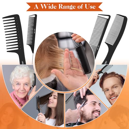 SALONSILK 4PCS Professional Comb Set, Wide Tooth Rat Tail Fine Tooth Hair Combs, Braiding Cutting Barber Styling Curly Parting Set for Men and Women