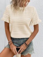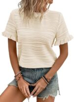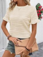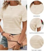 Samefar Womens Crewneck Texture Ruffle Shorts Sleeve Shirts Casual Loose Flowy Tee Tops Blouses Fashion Outfits Trendy