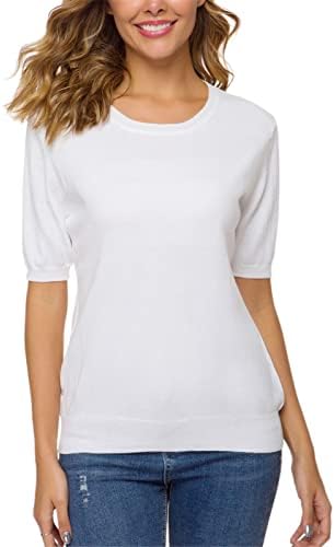 SANGTREE Women’s Short Sleeve Pullover Sweaters Crewneck Knit Soft Tops