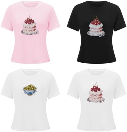Short Sleeve Graphic T Shirts for Women Teens Y2k Bow Print Aesthetic Crop Tops Cute Baby Tee Summer Fashion 2024
