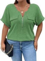 Be the first to review “Short Sleeve T-Shirt for Womens Zipper V Neck Ribbed Solid Color Blouse Summer Casual Lightweight Shirts Tops” Cancel reply