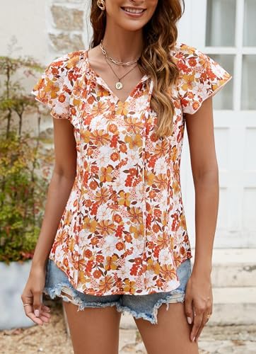 SimpleFun Women’s Boho Tops Floral V Neck Short Sleeve Summer Blouse Shirts