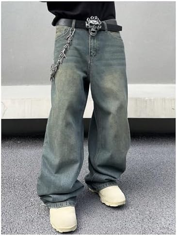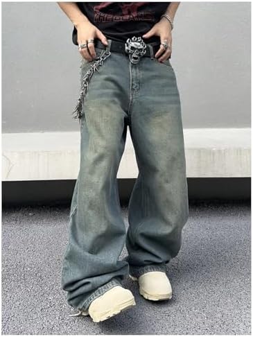 SOLY HUX Men’s Y2K Baggy Jeans Wide Leg Denim Pants Hip Hop Streetwear Trousers