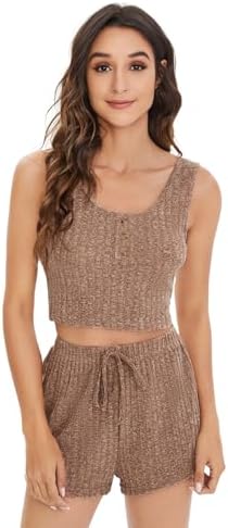 SOLY HUX Women’s Button Front Ribbed Knit Tank Top and Shorts Pajama Set Sleepwear Lounge Sets