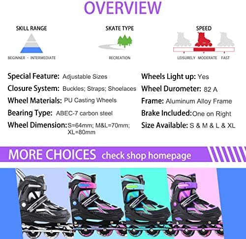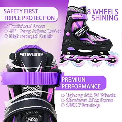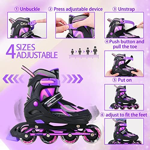 Sowume Adjustable Inline Skates for Girls and Boys, Roller Skates with All Light Up Wheels, Patines para Mujer for Kids and Adults, Men, Women