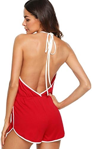 SweatyRocks Women’s Halter Sleeveless Short Jumpsuit Rompers Backless Playsuit