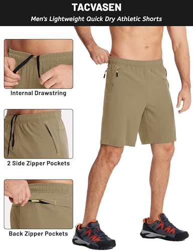 TACVASEN Men’s Running Athletic Shorts 9″ Quick Dry Workout Gym Shorts Lightweight Summer Shorts 3 Zipper Pockets