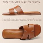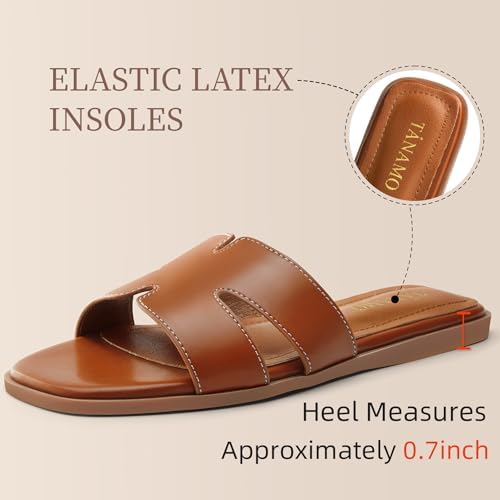 Tanamo Women’s Slide Sandals, Comfortable Flats Summer Dressy Casual Beach Open Toe Shoes Slip On Leather Flat Sandals