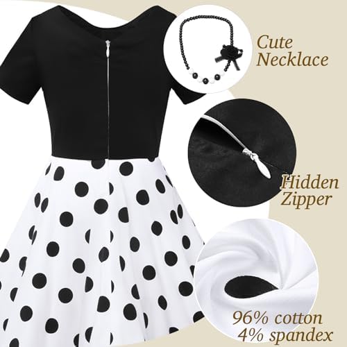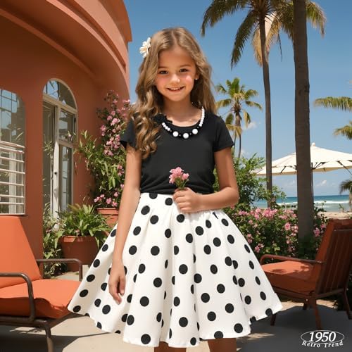 Tao-Ge Christmas Dresses for Girls Vintage Dress 50s 1950 Outfit Kids Girl Polka Dot Flower Checkered Party Dresses Size 6-12
