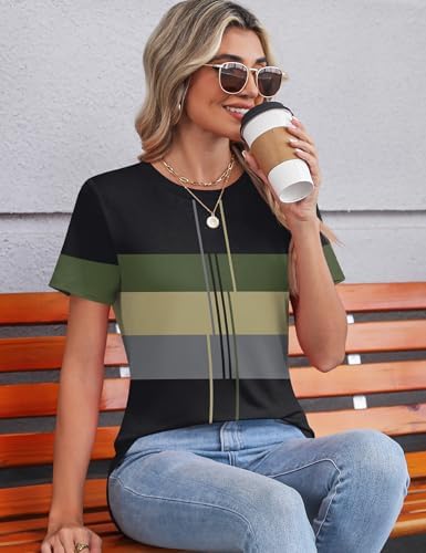 TCOT Women’s Tops Summer Short Sleeve Crew Neck Shirts Dressy Casual Blouses for Women S-3XL