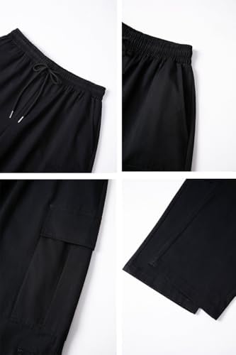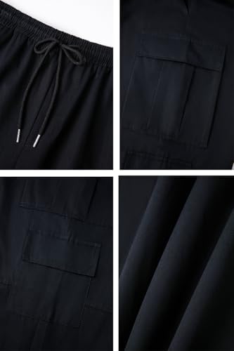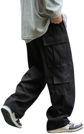 THWEI Mens Cargo Pants Drawstring Elastic Waist Casual Baggy Pant Streetwear Multi Pockets