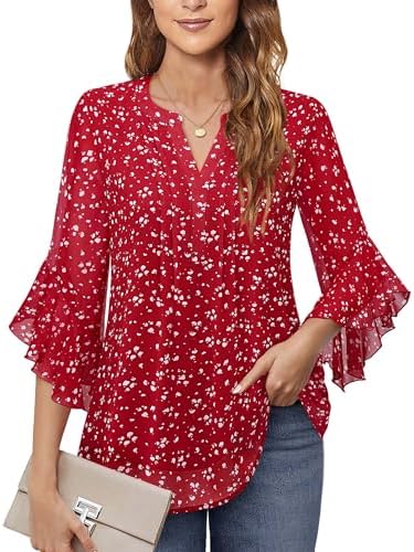 Timeson Women’s 3/4 Sleeve Tops Dressy Casual Business Work Blouses Chiffon Office Shirts
