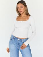 Be the first to review “Trendy Queen Womens Long Sleeve Shirts Crop Square Neck Ribbed Tops Basic Slim Fit Y2K Fall Winter Clothes Outfits 2025” Cancel reply