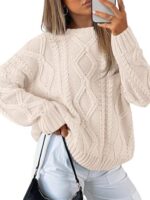 Trendy Queen Women’s Oversized Cable Knit Crewneck Sweaters