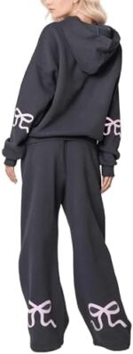 Two Piece Outfits Bow Graphic Print Hoodie Sweatpants Set Oversized Sweatshirt and High Waist Sweatpants Tracksuit