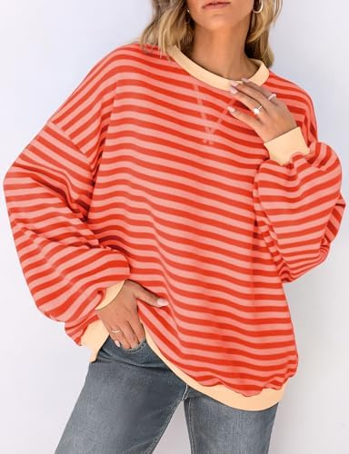 UEU Women Oversized Striped Crewneck Sweatshirt Long Sleeve Color Block Pullover Tops Casual Loose Workout Shirt