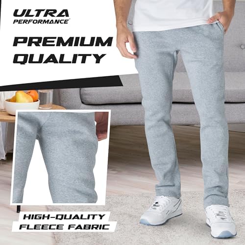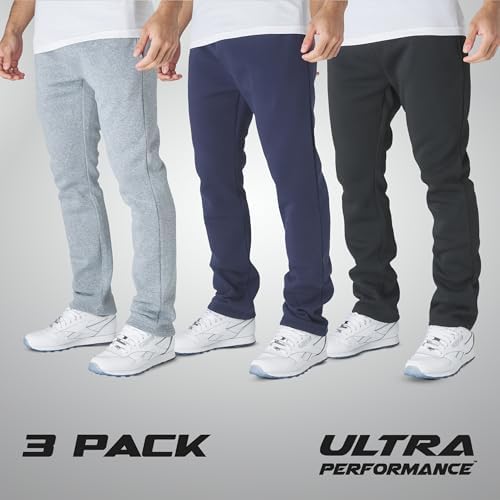 Ultra Performance 3 Pack Mens Fleece Wide Leg Sweatpants with Pockets, Open Bottom Workout Sweatpants for Men