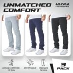 Home Bottoms Ultra Performance 3 Pack Mens Fleece Wide Leg Sweatpants with Pockets, Open Bottom Workout Sweatpants for Men