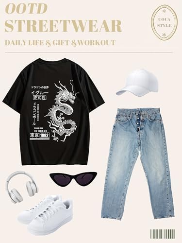 Home Men’s Fashion Streetwear UOUA Mens Graphic Tees Vintage T-Shirts Oversized Letter Print Casual Crewneck Cotton Top Short Sleeve Rapper Streetwear