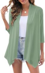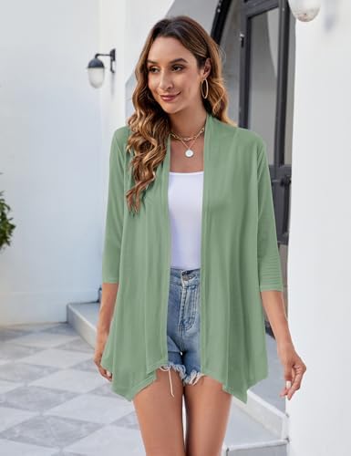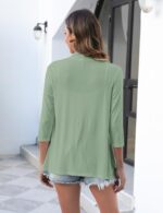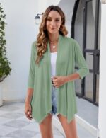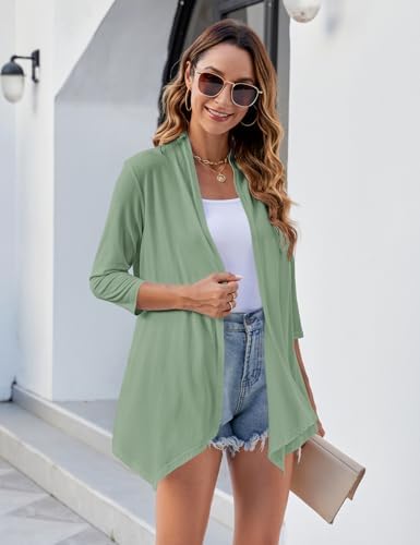Uvog Women’s 3/4 Sleeve Draped Open Front Cardigan Casual Loose Lightweight Cardigans