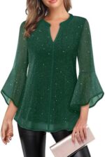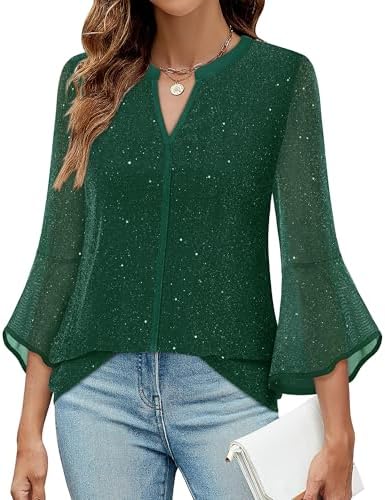 VALOLIA Women’s 3/4 Sleeve Dressy Blouses Shirts Casual Loose Fit Mesh Layered Flowy Tunic Tops