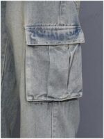 Mens Goth Baggy Cargo Jeans with Pockets Steampunk Patchwork Embroidery Wide Leg Denim Pants