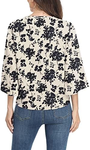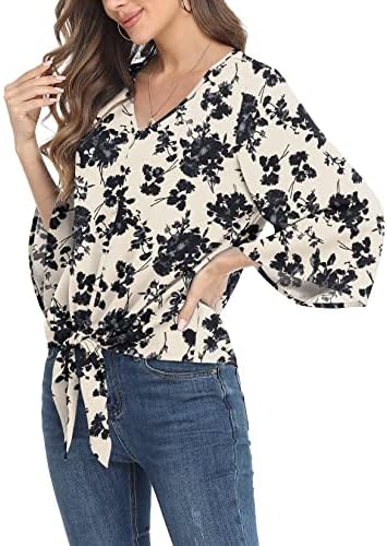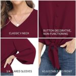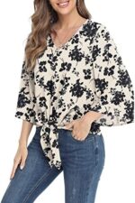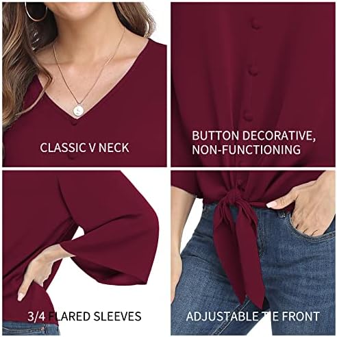 VIISHOW Women’s Button V Neck Chiffon Tops 3/4 Bell Sleeve Tie Knot Casual Blouses Loose Summer Shirts