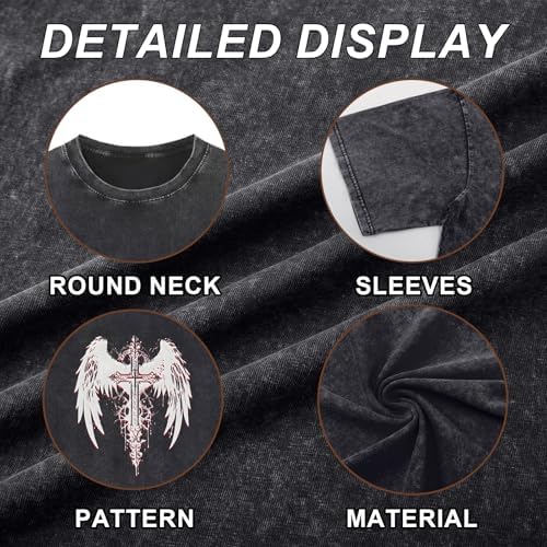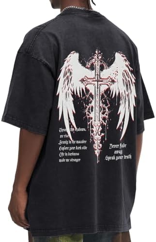 Home Men’s Fashion Streetwear Vintage Goth Punk Shirts for Men Grunge Streetwear Oversized Tshirts Gothic Cross Y2k Graphic Tees Acid Wash T Shirt