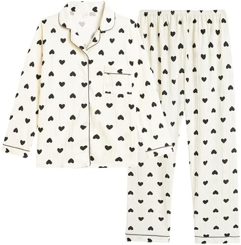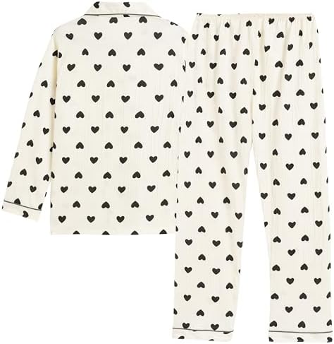 Vopmocld Big Girls Button Down Pajama Sets Crepe Soft Lapel Shirt Sleepwear Printed Lounge Set Long Sleeve Long Pants Nighty