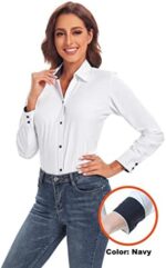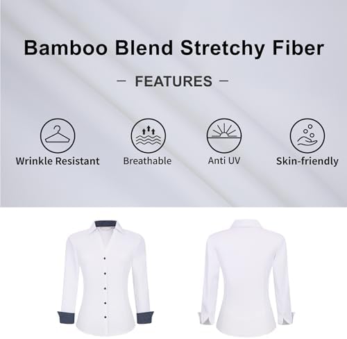WARHORSEE Womens Button Down Shirt Long Sleeve Work Dress Shirts, V Neck Easy Care Stretchy Business Casual Blouses for Women